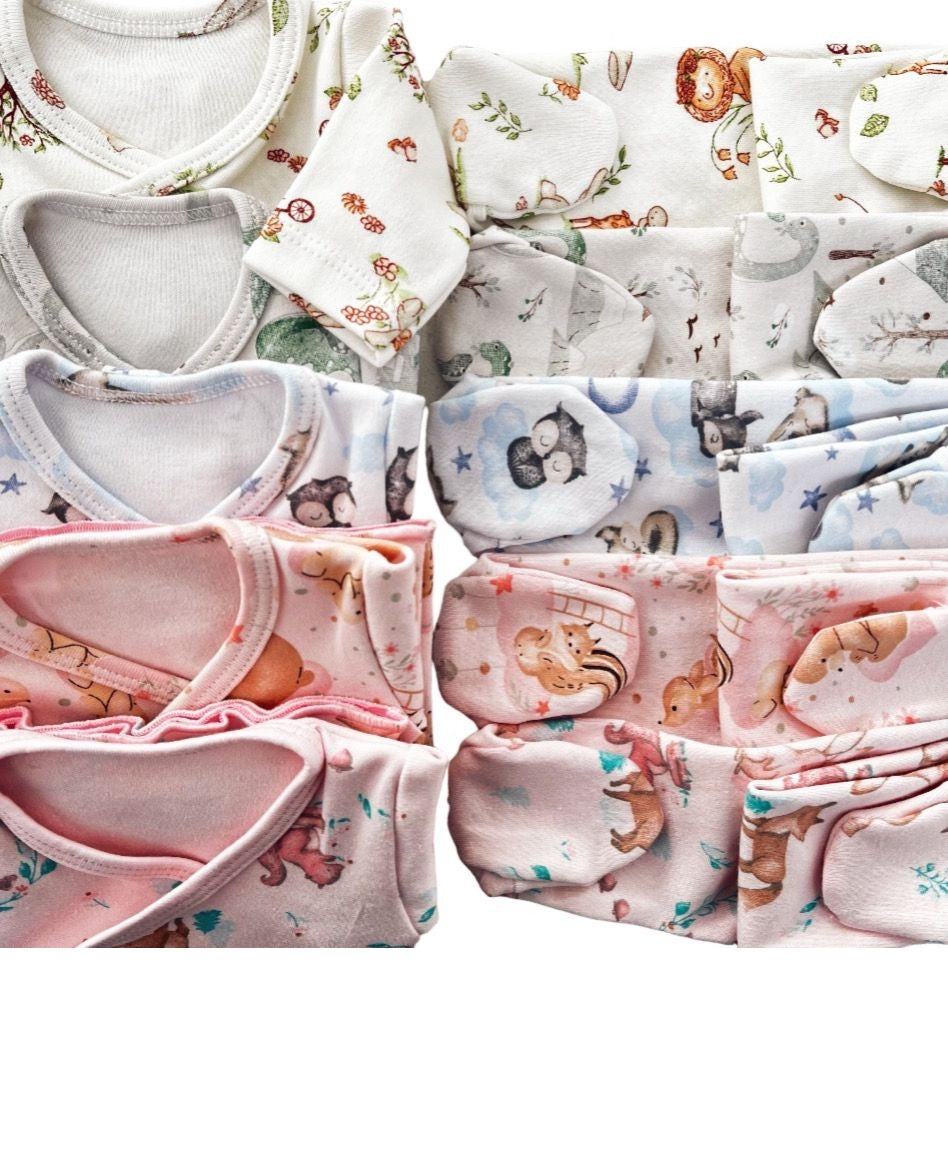 📏 Talle: 00 (prematuro) 🌸 Estampados variados: nena | nene | unisex 👶 Incluye 2 piezas: batita con cinta y ranita estampada ✨ Ligero y práctico para los primeros cuidados 📦 Algodón suave, ideal para acompañar la piel sensible