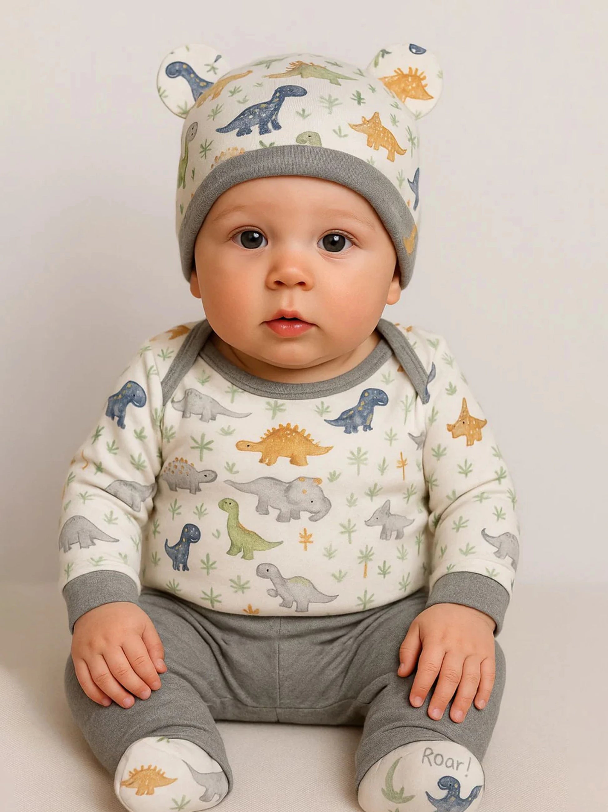 Un ajuar alegre y cómodo para acompañar a tu bebé en sus primeros meses. Confeccionado en algodón hipoalergénico, es suave y seguro para la piel delicada del recién nacido. Sus estampados divertidos lo convierten en un conjunto práctico y encantador para cada día.