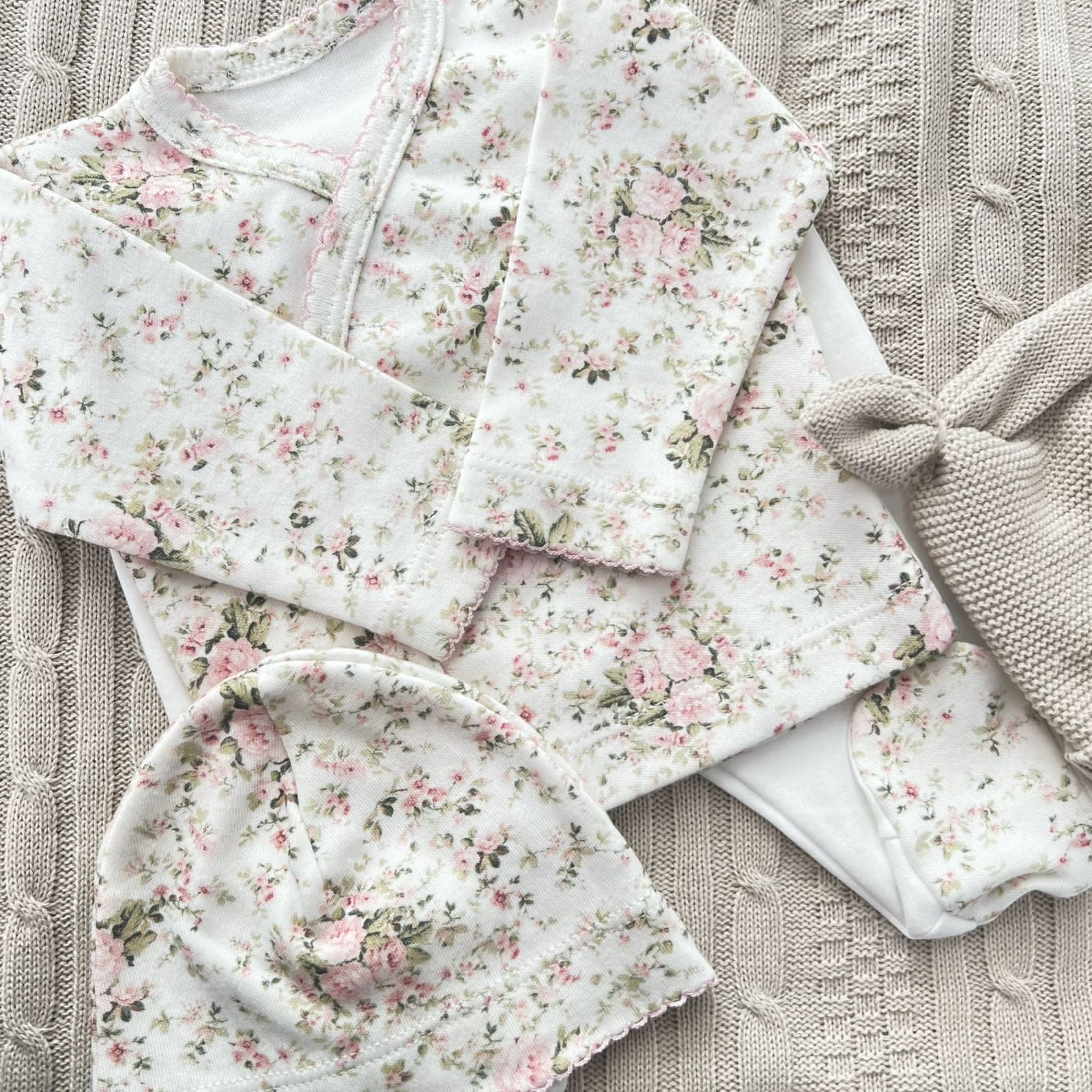 Un ajuar estampado pensado especialmente para el primer gran encuentro con tu bebé. Confeccionado en algodón Pima de alta calidad, brinda suavidad y resistencia mientras cuida la piel sensible del recién nacido. Su talle único se adapta hasta los 5kg (dependiendo de cada bebé).