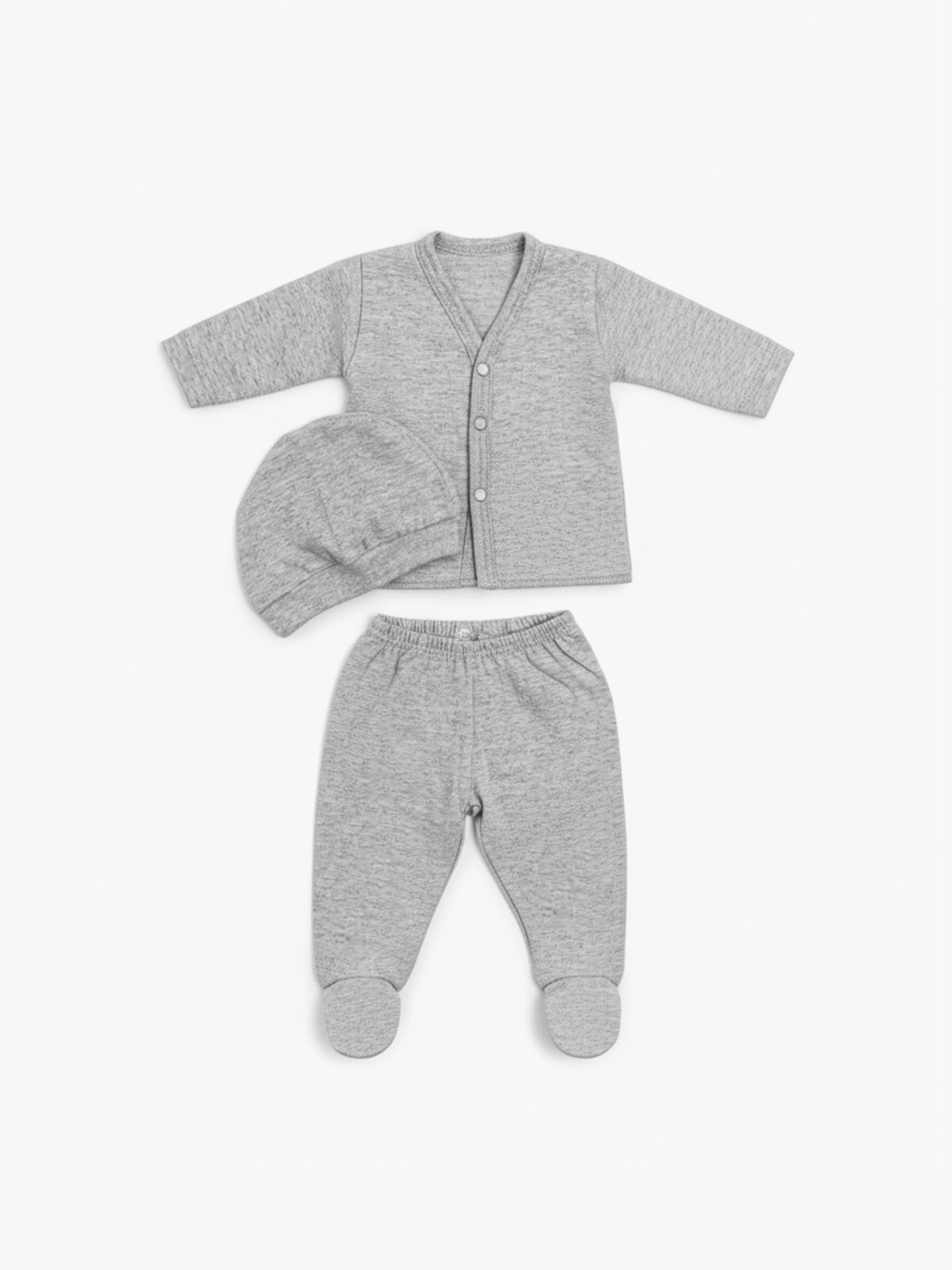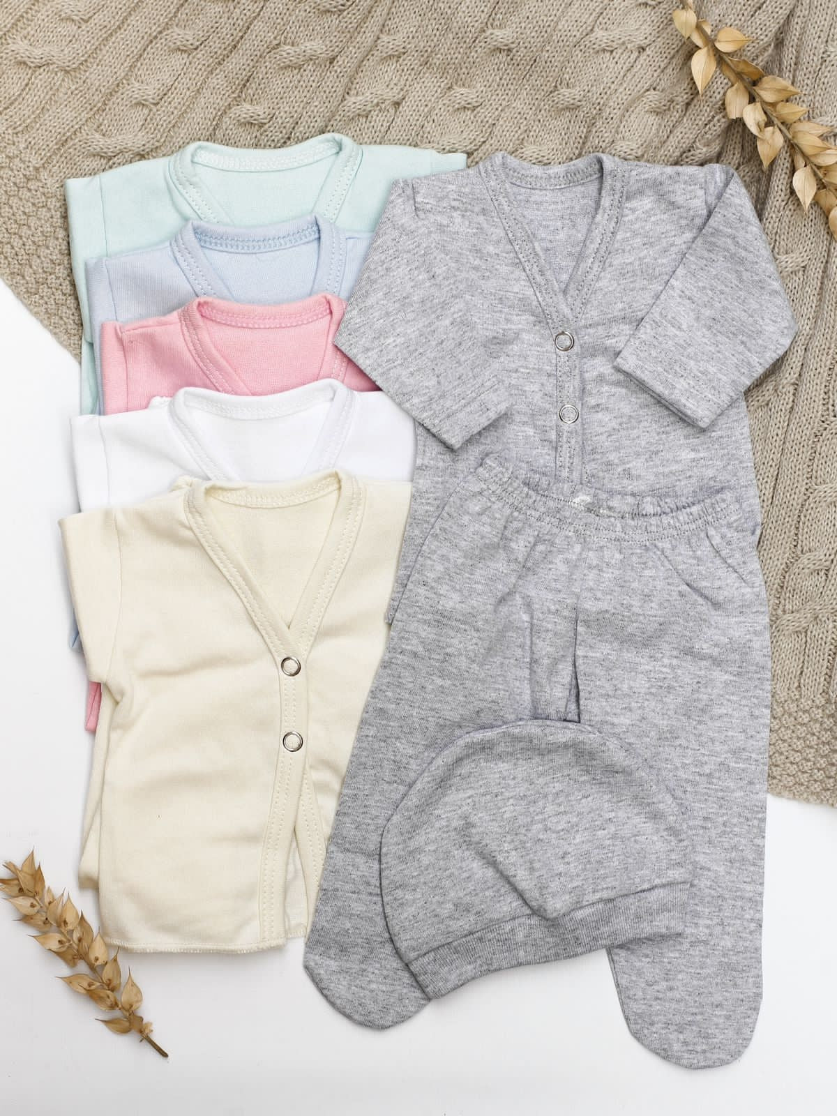 Un ajuar básico y delicado para bebés prematuros, pensado para acompañar sus primeros días con suavidad y abrigo. Confeccionado en algodón, brinda comodidad y protección en cada prenda.
