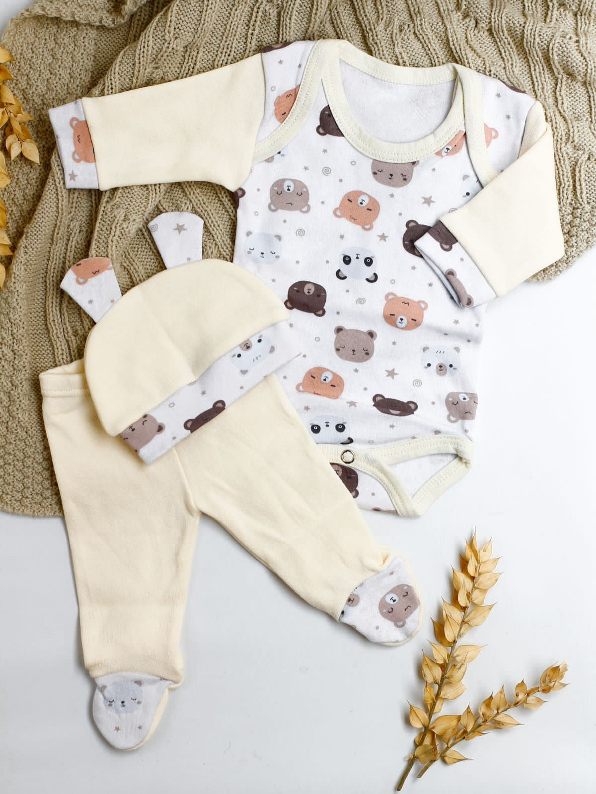 📏 Talle: 00 (prematuro) 🎨 Estampados variados: nena | nene | unisex 👶 Incluye 3 piezas: body estampado, ranita y gorrito combinados ✨ Liviano, cómodo y práctico 📦 Elaborado en algodón suave para el contacto diario con la piel