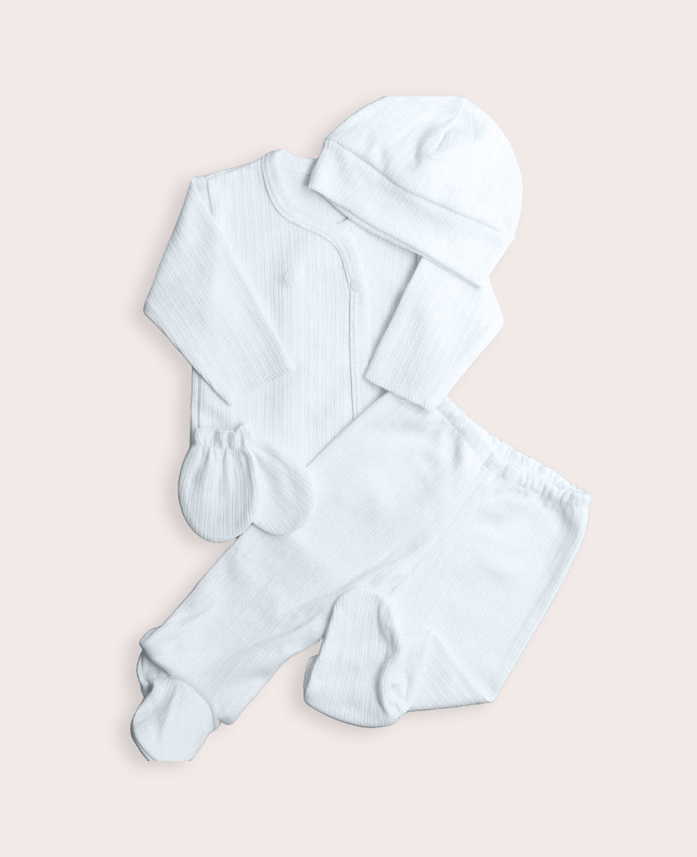 🌸 Disponible en blanco, beige, rosa y celeste. ✨ Práctico, completo y de excelente calidad. 👶 Su talla única va hasta los 5kg inclusive (dependiendo de cada bebé). 💲 Una opción accesible. 📦 Incluye 1 Ajuar de 4 piezas (batita, ranita, manoplas, gorrito), 1 mantita recibidora y 1 portachupete.