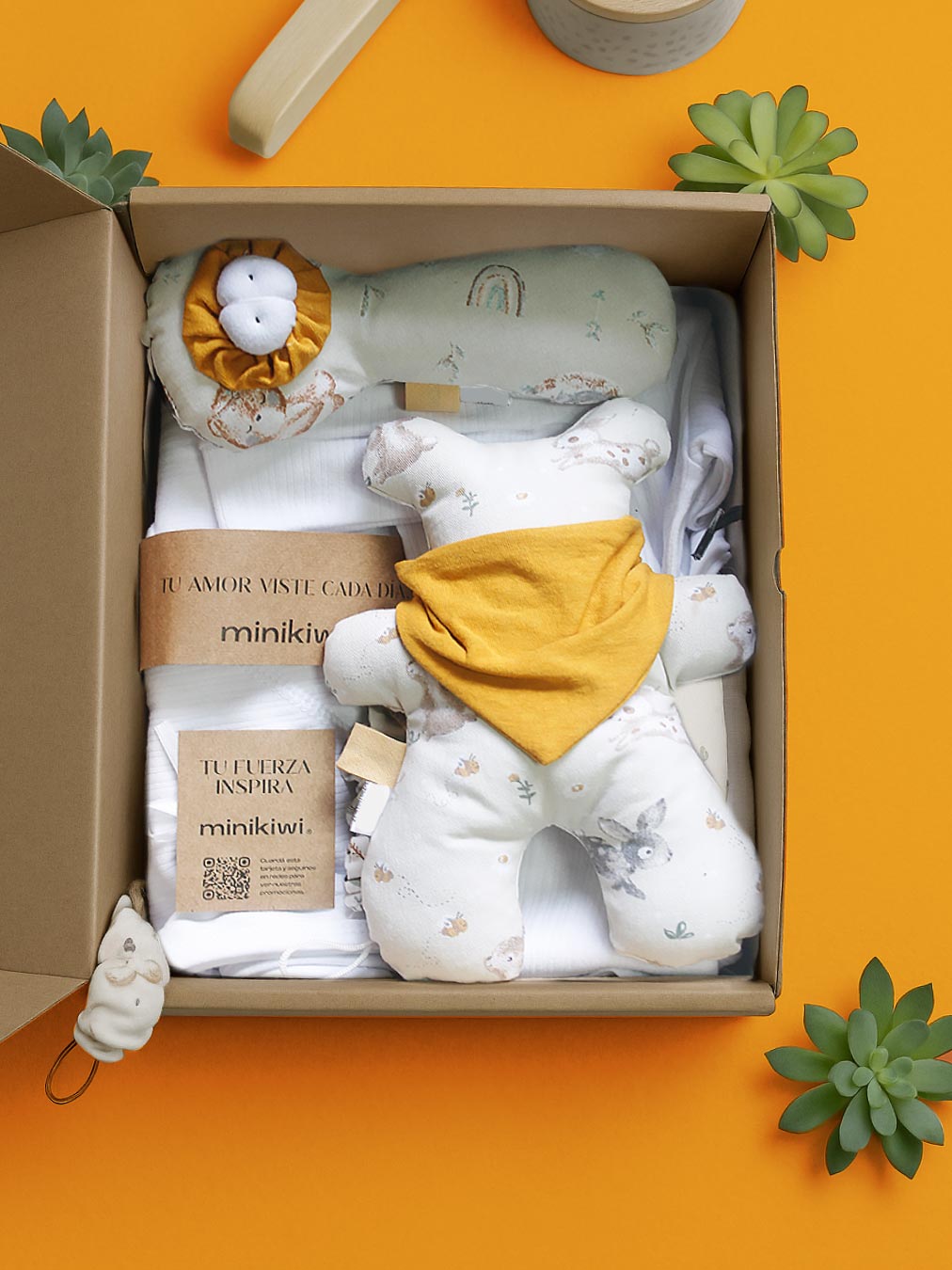 ✨ Dale la bienvenida más completa a tu bebé con nuestro pack Minikiwi Universo. Incluye un ajuar de 7 piezas pensado para acompañar sus primeros días de vida, junto con accesorios esenciales que lo harán sentirse protegido y acompañado.
